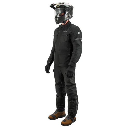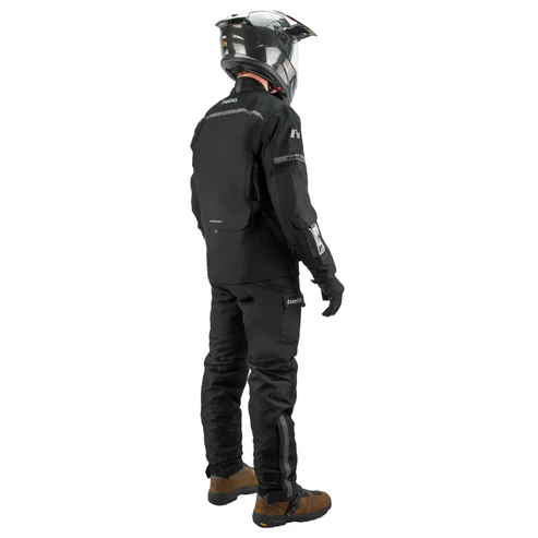 Für Sicherheit sorgen Level-2-Protektoren an Schultern und Ellbogen. Eine Tasche für einen Rückenprotektor ist vorhanden. Belüftungsöffnungen vorne und hinten ermöglichen eine bessere Luftzirkulation während der Fahrt. Mehrere Taschen außen und innen bieten ausreichend Stauraum. Reflektierende Elemente erhöhen die Sichtbarkeit bei schlechten Lichtverhältnissen.